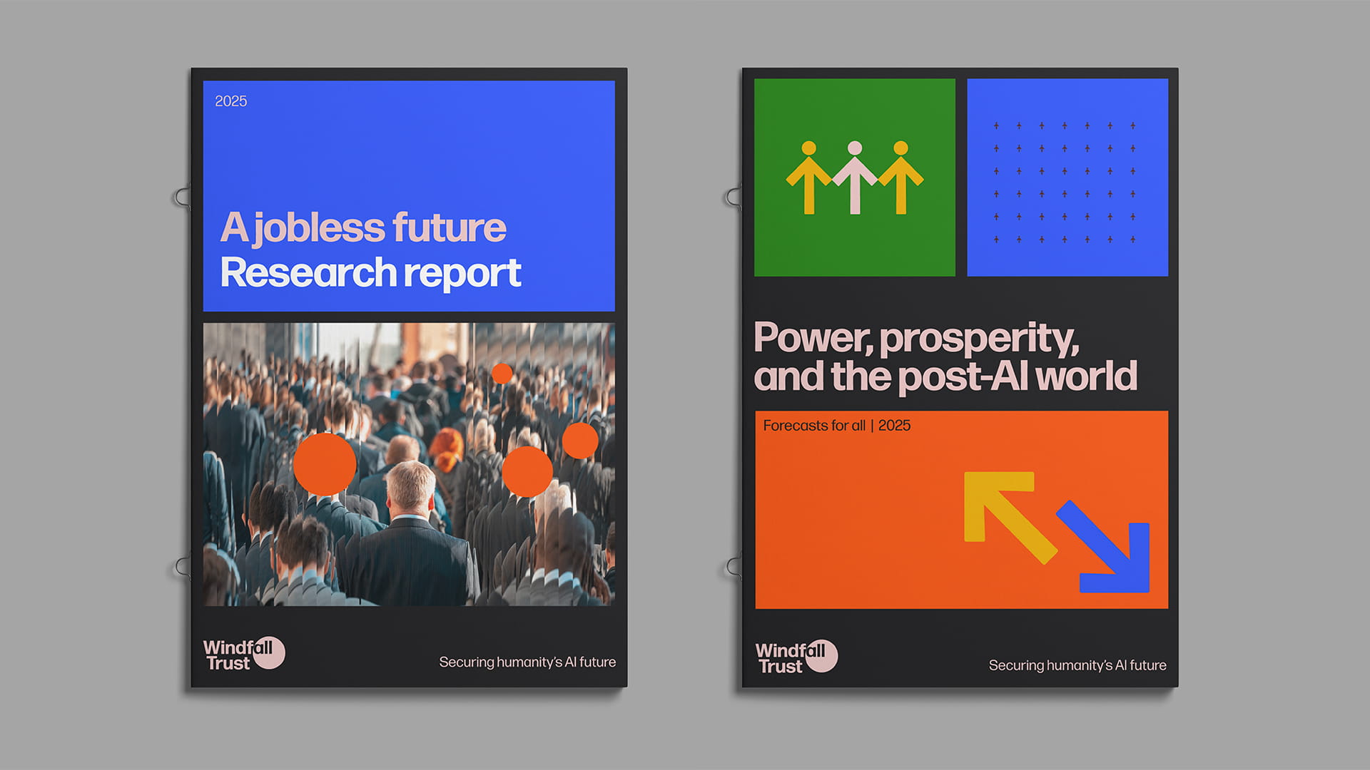 Visuals alone rarely do the full job of communicating meaning. In the case of Windfall Trust, much of the heavy lifting is done by the brand’s messaging and narrative structure – from the idea that there will be a windfall of wealth concentrated in very few hands, to the urgent choices we face about how that wealth will be distributed.